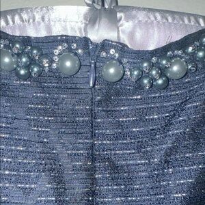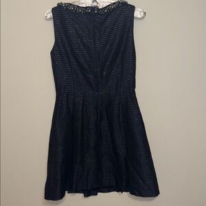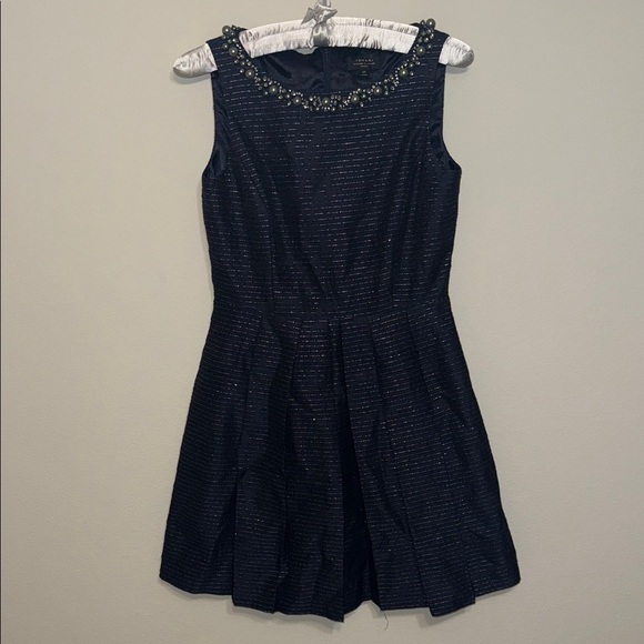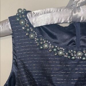 Tahari ASL Navy Blue Sleeveless Dress Metallic Silver w/ Embellished Neckline DD