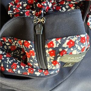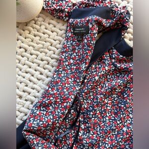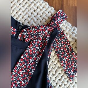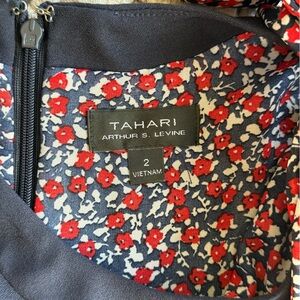 Tahari ASL Navy and Red Floral Side Neck Bow Shift Dress 2