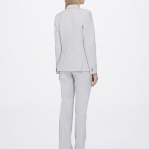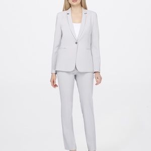 Start the new season with this impeccably tailored pantsuit. The classic one-button jacket and great-fitting pants are crafted of bi-stretch fabric, known for its superb shape retention. Jacket: Narrow notched collar One-button front Welt pockets Long sleeves Pants: Hook-and-bar waistband with front zipper Polyester Rayon Elastane Bi-Stretch with Polyester lining Color: Sterling