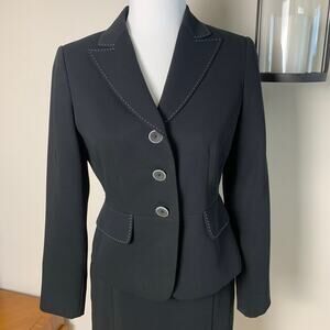 Tahari ASL Petite Sz 4P 2-Piece Skirt Suit w/ Blazer Jacket Black Office Career