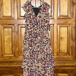 Tahari ASL Petite Women's Floral Side Ruched Chiffon Midi Dress - 8P NWT $159