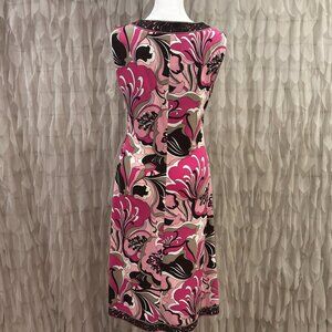 Tahari ASL Pink Sleeveless V-Neck Floral Dress | Women's Size 6