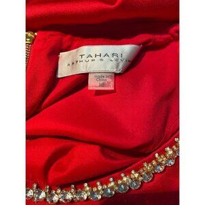 Tahari ASL Red Asymmetrical Sleeve Cocktail Dress, Rhinestones Women's Size 10
