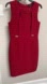 Chic sleeveless midi dress by Tahari. Features a rich crimson hue with elegant gold accents. Perfect for any occasion.