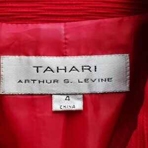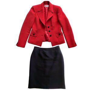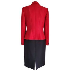 Tahari ASL Red Textured 3 Button Red Jacket & Black Textured Pencil Skirt Size 4