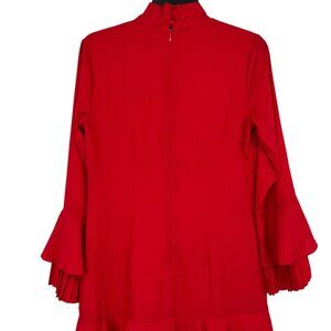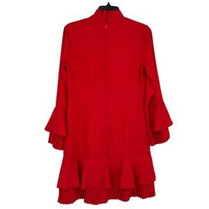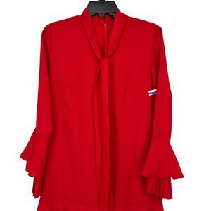 Tahari ASL Ruffle Pleat Detail Tie Neck Bell Sleeve Dress Red Size 2 NWOT