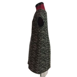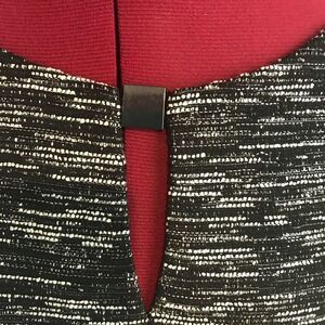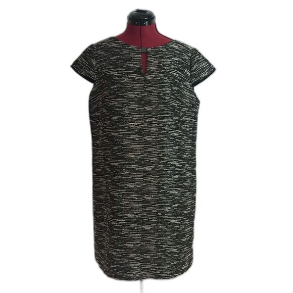 Tahari ASL Sheath Dress Size 12P Black/White/Silver Cap Sleeves Exposed Back Zip