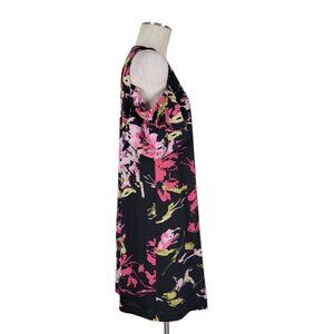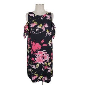 Tahari ASL Shift Dress Size 14 Cold Shoulder Back Zip Black Pink Floral Stretch