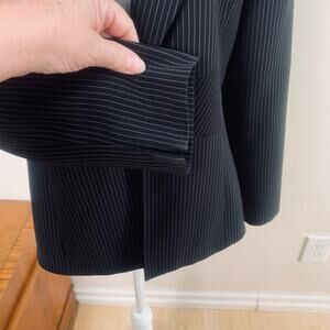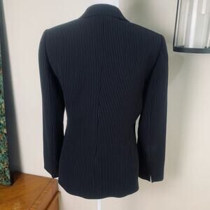 Tahari ASL Size 8 Flower Brooch Pinstripe Blazer Jacket Black White Career