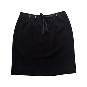 Tahari ASL Black Grommets Ribbon Tie Waist A-Line Dressy Career Knee Length Skirt