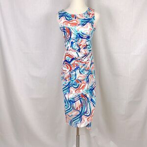 Tahari ASL Sleeveless Sheath Dress Midi Multicolor Geometric Print Sz 6 New
