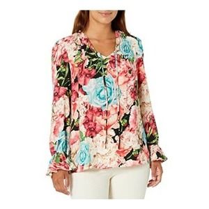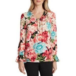 Tahari ASL Smocked Ruffle Tie-Neck Blouse Tops XS