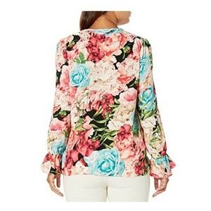 Long sleeve tie neck blouse. MSRP: $69 100% Polyester Imported Pullover closure Dry Clean Only Tie neck Long sleeve Ruffled sleeve Smocked shoulders Size: XS Color: Pink SKU: G118213.45518.