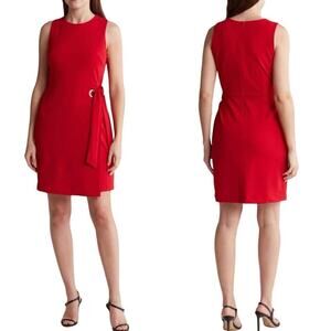 Tahari ASL Stretch Crepe A-Line Grommet Side Tie Mini Dress Size US 8 Red. New with tag, no flaws. Measurements are approximates only.