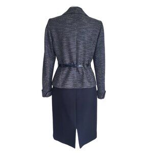 Tahari ASL Tweed Double Breasted Belted Jacket Black Skirt Suit Set Size 4