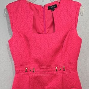 Tahari Arthur S Levine Hot Pink Sleeveless Shirley Sheath Dress Textured Career Office Formal