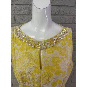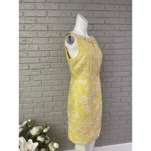 Tahari ASL Women Yellow White Floral Faux Pearl & Gold Sequin Sheath Dress Size