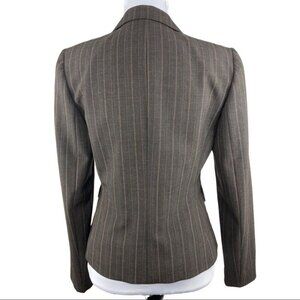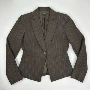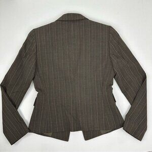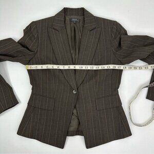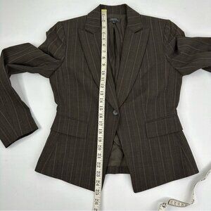 Tahari ASL Women's Brown and Tan Pinstripe One Button Preppy Blazer 4/35.25"