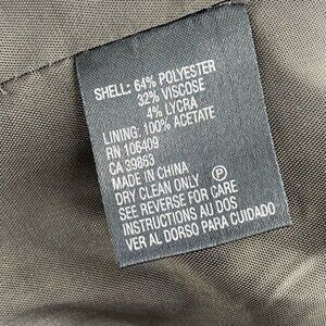 Tahari ASL women's size 4 blazer, it has brown and tan pinstripe print, point lapel, long sleeves, two front fold over pockets, one button closure, padded shoulders and lined. Materials shell 32% rayon, 64% polyester, 4% spandex, lining 100% acetate. Care dry clean only. RN106409 MFSR$250.00 Condition is preloved very good as shown in pictures. Please see measurements below to ensure fit.