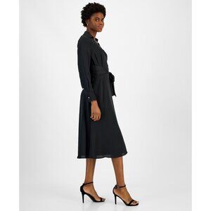 Tahari ASL Women's Collared Waist-Tie Midi Dress Black Size 16 MSRP $149