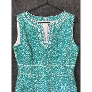 Tahari ASL Womens Sheath Dress Green Size 8 Sleeveless Knee Length 100% Cotton