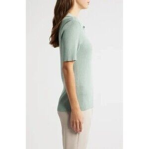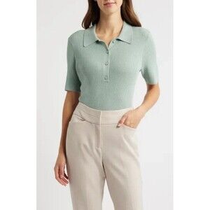 Tahari ASL Women's Warm And Cozy Rib-Knit Polo Sweater Top Dusty Aqua Size L