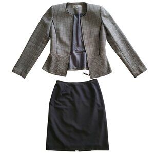 Really nice suit with plaid jacket with front zip and peplum waist and black pencil skirt