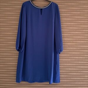 Tahari ASL beautiful blue dress with gold hardware and zipper in back. Perfect for any occasion and extremely comfortable. Is pre loved but still looks new and only worn twice and taken to dry cleaners.