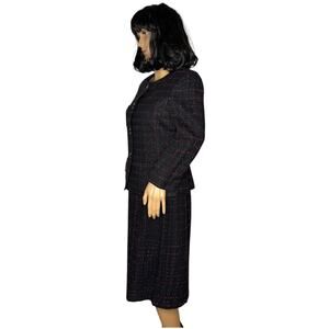 Tahari Arthur S. Levine, what a beautiful elegant and comfortable dress coat suit in black boucle tweed in black with red and black sparkley also. What a great outfit for a party or formal event.