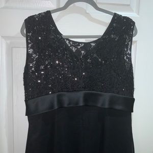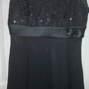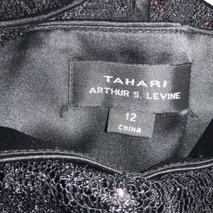 Tahari ASL fit & flare black cocktail dress Sz 12 satin waist sequin lace