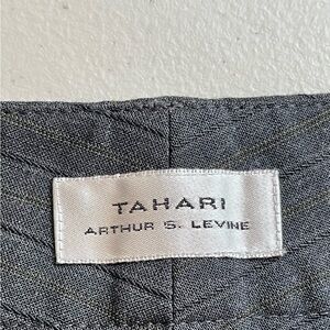 Tahari ASL gray gold pinstriped dress pants slacks trouser midnrise flare 6