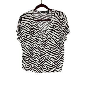 Tahari Animal Print Linen Top XL Tan Zebra Safari Neutral Classic Chic Striped