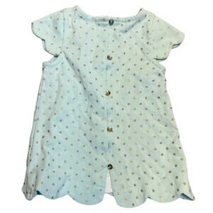 Tahari Aqua Blue & Gold Glitter Polka Dot Dress EUC Size 24 Months