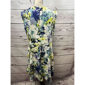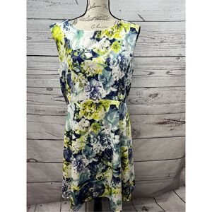 Tahari Arthur Lavigne size 16 lined white dress with green/blue flowers - 2839