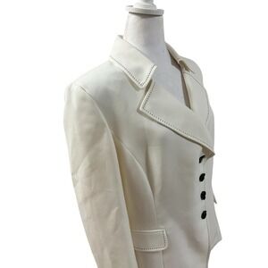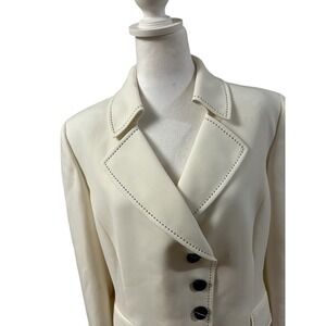 Tahari Arthur Levine 2pc Pant Suit. Winter White Jacket; Black Pants Sz 14
