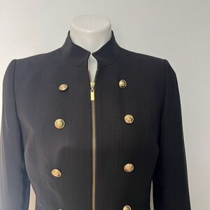 Tahari Arthur Levine Black Military style gold button blazer jacket