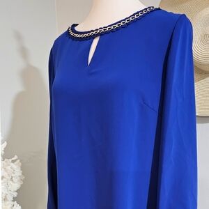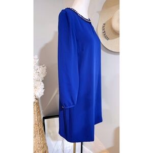 Tahari Arthur Levine Cobalt Blue Chain Trim Long Sleeve Mini Dress