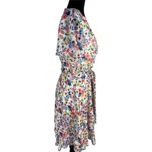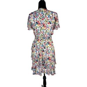 Tahari Arthur Levine Floral Faux Wrap Sheer Flutter Sleeve Belted Tier Dress 4