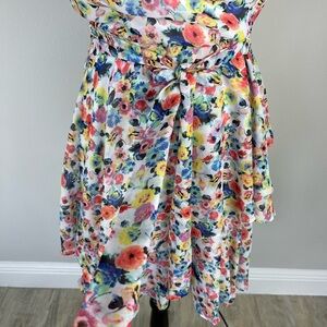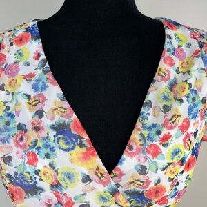 Excellent condition Tahari Arthur Levine Floral Faux Wrap Sheer Flutter Sleeve Belted Tier Dress 4.