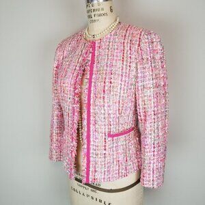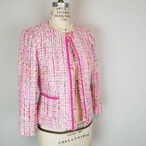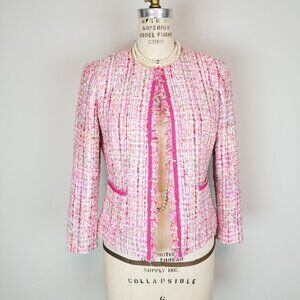 Tahari Arthur Levine Pink Tweed Boucle Sparkle Jacket Ladies Size 2 Petite
