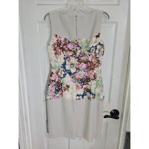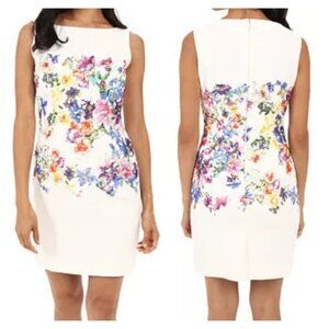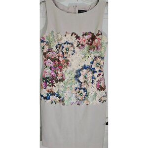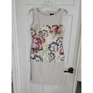 Tahari Arthur Levine Women's Ivory Floral Sheath Dress Sleeveless Boat Neck Sz 6
