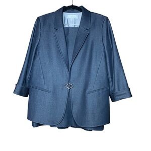 Tahari Arthur Levine brushed Navy Single Breasted Business skirt suit size 10