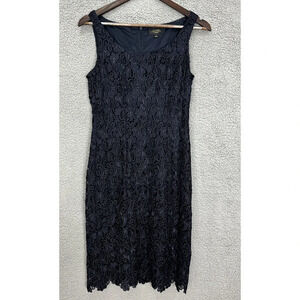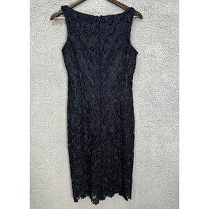 Tahari Arthur S Levin Luxe Sheath Dress Womens 4 Blue Crochet Lace Overlay Event