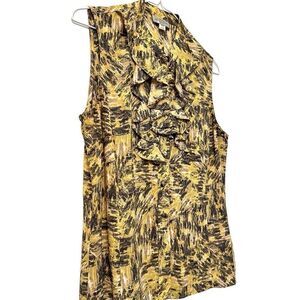 Tahari Arthur S Levine Abstract Print Ruffle Button Front Sleeveless Blouse Yellow Black PS