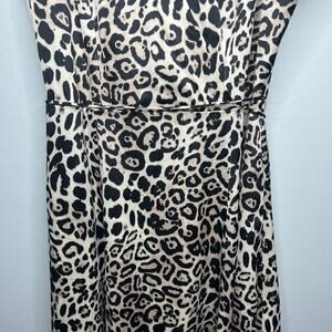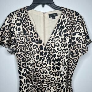 Tahari Arthur S. Levine Animal Print Dress Sz 14 Faux Wrap V-Neck Flutter Sleeve