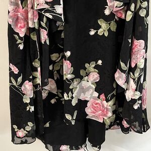Tahari Arthur S. Levine Black Floral Sleeveless Maxi Wrap‎ Dress Size 6 Lined