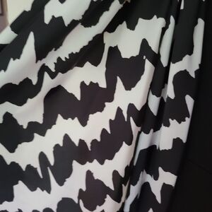 Tahari Arthur S. Levine black sheath dress with an attached black and white printed scarf.