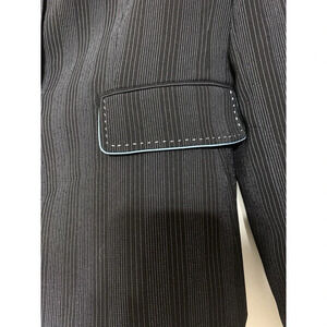 Tahari Arthur S Levine Blazer Jacket Sz 10P Black Striped W Turquoise Career