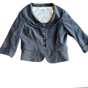 Tahari Arthur S Levine Blazer Pin Dot Black 3/4 Sleeve Gold Buttons Size 16P