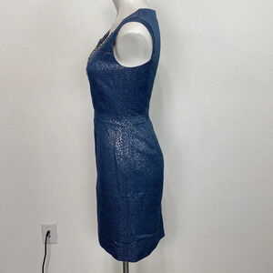 Tahari Arthur S. Levine Blue Silver Preppy Beaded Neck Metallic Cocktail Dress
